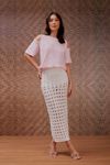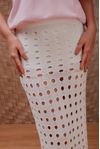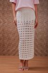 Saia midi shape lápis. Feita em tricot vazado tipo tela. Acompanha underwear hot pants.