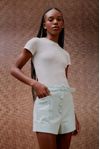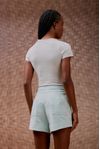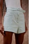 Short cintura alta fivela e botões forrados. Bolsos na diagonal. Feito em algodão caimento estruturado e visual rústico, que utiliza menos água e emite menos CO²