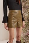 Short cintura alta shape levemente evasê. Couro fake de viscose com cobertura de poliuretano. Textura tressê que confere modernidade ao artigo.
