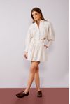 Short saia godê, cós largo. Confeccionado em tricoline listrada.