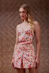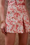 Short saia cintura alta prega. Base sarja de algodão eco sustentável, feito de algodão BCI, que controla a quantidade de agrotóxico usado e utiliza menos água comparado ao processo tradicional.