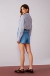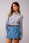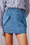 Short saia jeans stone washed, com lapela e confeccionado em 100% algodão. Ideal para compor looks estilosos.