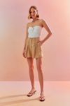 Short em crepe de viscose com comprimento excelente para dia a dia e detalhe em mini pregas perto do bolso que dão o charme.