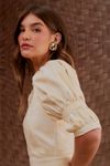 Vestido curto shape tubinho. Mangas bufantes que valorizam à peça. Tecido sarja de algodão e viscose. Estampa exclusiva floral marmorizado.