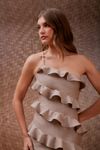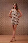 Vestido curto babados diagonal e um ombro. Tecido crepe de alfaitaria com leve mesclado.
