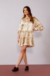 Vestido tipo bata com micro babadinhos e pate. Base de viscose acetinada com toque e ótimo caimento, feito em estampa exclusiva floral.