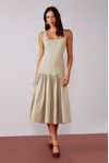 Vestido midi godê. Recorte quadril, franzidos. Tecido de algodão com ótimo caimento.