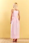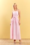 Vestido midi com modelagem super moderna. Fechamento tipo avental, interno 2 botões de pressão e por fora tira para amarrar. Bolsos laterais. Tricoline com toque paper.