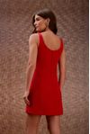 Vestido crepe com elastano. Modelagem tubinho levemente evasê. Recortes e lapelas que dão toque moderno à peça.