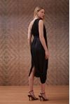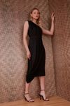 Vestido midi com sobreposição franzida. Cinto forrado para acinturar. É uma peça chique com modelagem autêntica. Feito em malha eco com leve acetinado feita a partir de fibras de madeira de reflorestamento.