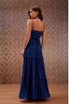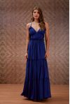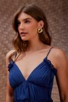 Vestido em georgette fluido. Saia godê e franzidos. Frufrus que valorizam à peça. Pala e bojo drapeados. É uma peça perfeita para momentos especiais.