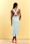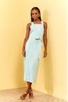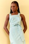 Vestido midi lápis, decote quadrado. Tiras costas cruzadas. Bolsos laterais e faixa para amarrar. Feito em linho misto de viscose com elastano que oferece mais conforto e leveza.