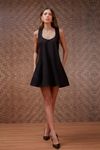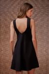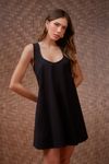 Vestido curto shape godê e bolsos laterais. Feito em algodão estruturado com toque levemente paper. É uma peça democrática e estilosa.