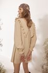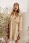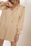 Vestido godê tipo bata. Gola com micros babadinhos. Viscose ECOVERO que une conforto, maciez e caimento suave. Apresenta maior facilidade de reciclagem pós uso, por ser um tecido sem misturas em sua composição.