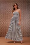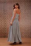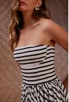Vestido midi godê franzido. Malha tipo ribana listrada. Bojo com recortes. Modelagem com caimento impecável e atemporal.