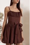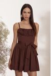 Vestido curto godê, bojo drapeado. Cintura com barbatana e saia pregas. Tecido tricoline com elastano. Invista para uma produção charmosa.