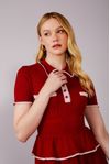 Vestido tricot gola polo, peplum. Detalhe acabamento biquinho bicolor e pate com botão forrado. Peça super feminina e com detalhes que valorizam à peça.