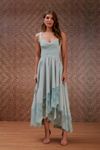 Vestido midi godê em crepe. Todo com recortes assimétricos. Mix aplicações de rendas na diagonal. É uma peça única, que insere visual moderno e sofisticado. Invista para uma produção mais impactante.