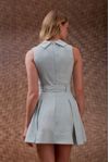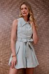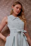 Vestido curto pate fake com botões forrados. Faixa para amarrar, saia evasê com pregas. Crepe fluido com aspecto natural e textura ligeiramente irregular. Peça cool, jovem e feminina, Invista!