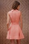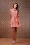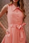 Vestido curto pate fake com botões forrados. Faixa para amarrar, saia evasê com pregas. Crepe fluido com aspecto natural e textura ligeiramente irregular. Peça cool, jovem e feminina, Invista!